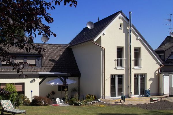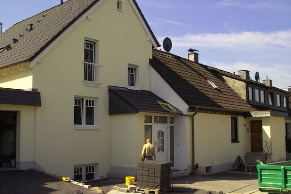 Hinterm Berg Art der Arbeit: Wärmedämmung Objekt: Einfamilienhaus Standort: Velbert / Langenhorst Jahr: 2004 Farbe: weiss gelb Wärmedämmarbeiten an einem Anbau eines Einfamilienhauses in Velbert-Langenhorst.